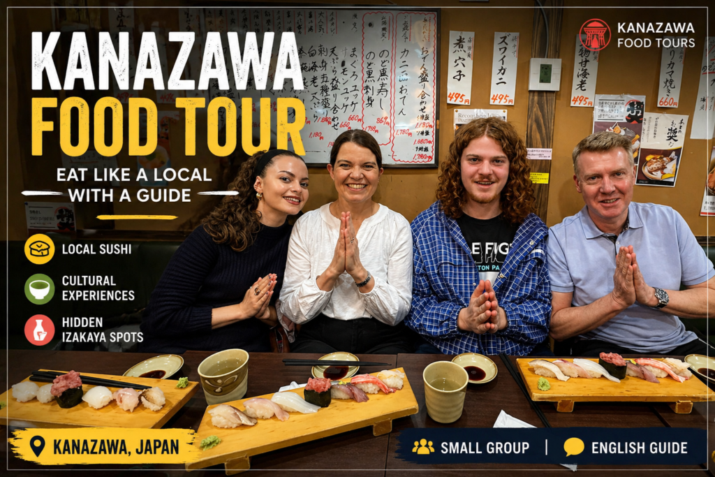 his tour takes you to local izakayas in Kanazawa, where you can experience Japan’s drinking culture firsthand. Share food and drinks with locals at hidden izakayas and enjoy the city’s relaxed nightlife atmosphere.